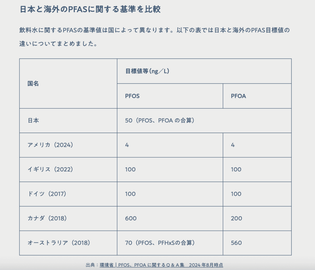 そもそもPFAS(PFOS、PFOA)のアメリカ基準は厳しい