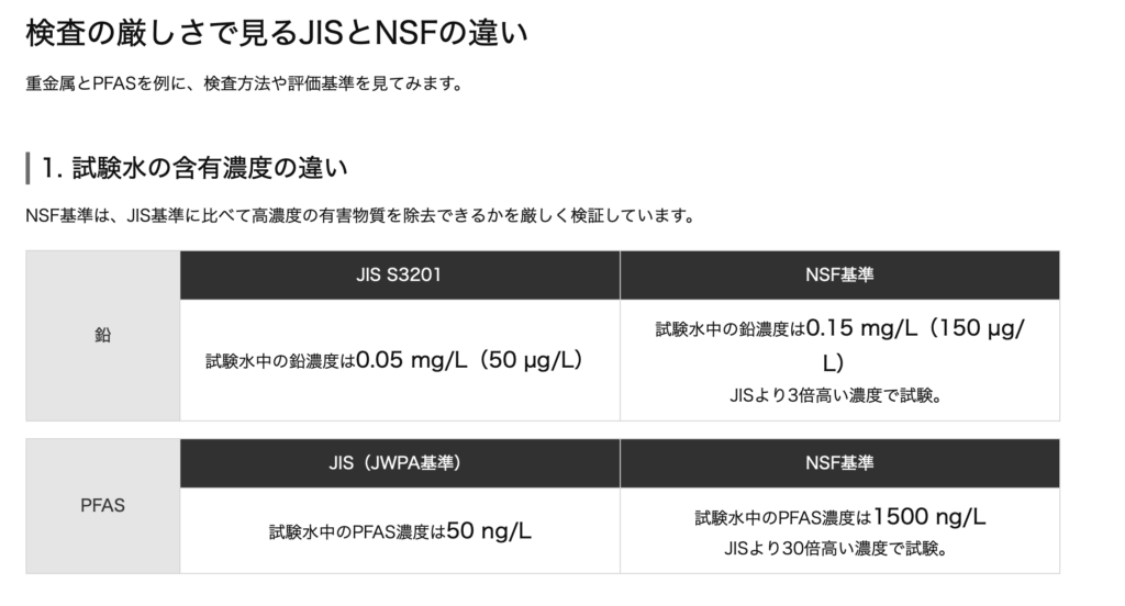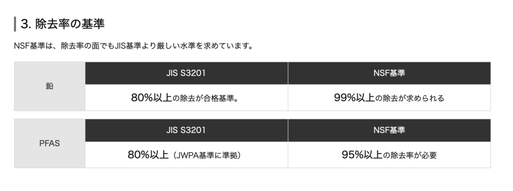 PFOS、PFOAだって、JISなら80%取れてれば合格だが、NSFだと95%除去できてなければダメ