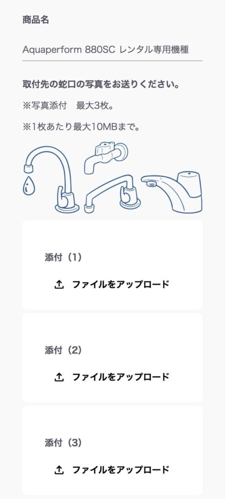 申込時に蛇口の写真を送って、メーカー側が設置可能か判断してくれます