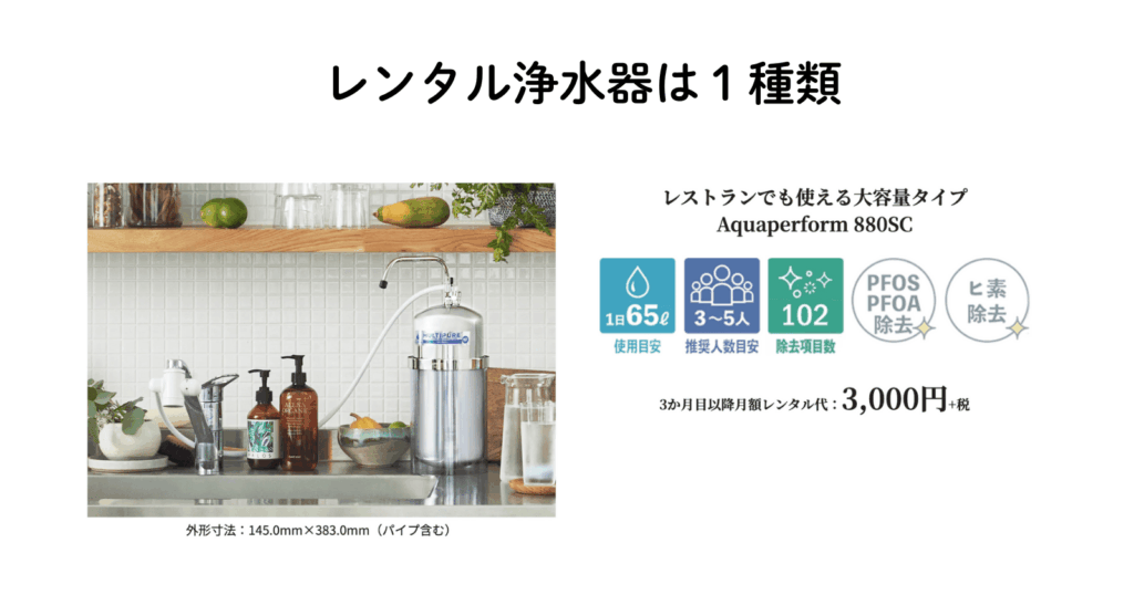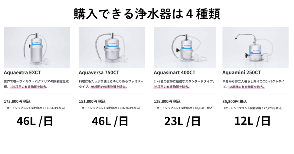 購入できる浄水器は4種類、レンタルは1種類