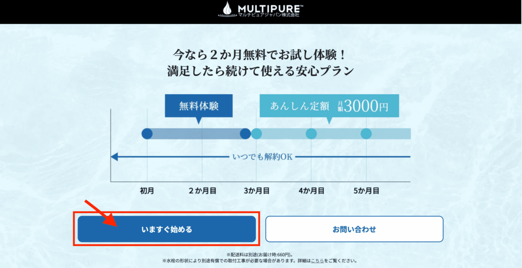 PFOS/PFOA、ヒ素が除去できるマルチピュアの浄水器はレンタルで試すことができます