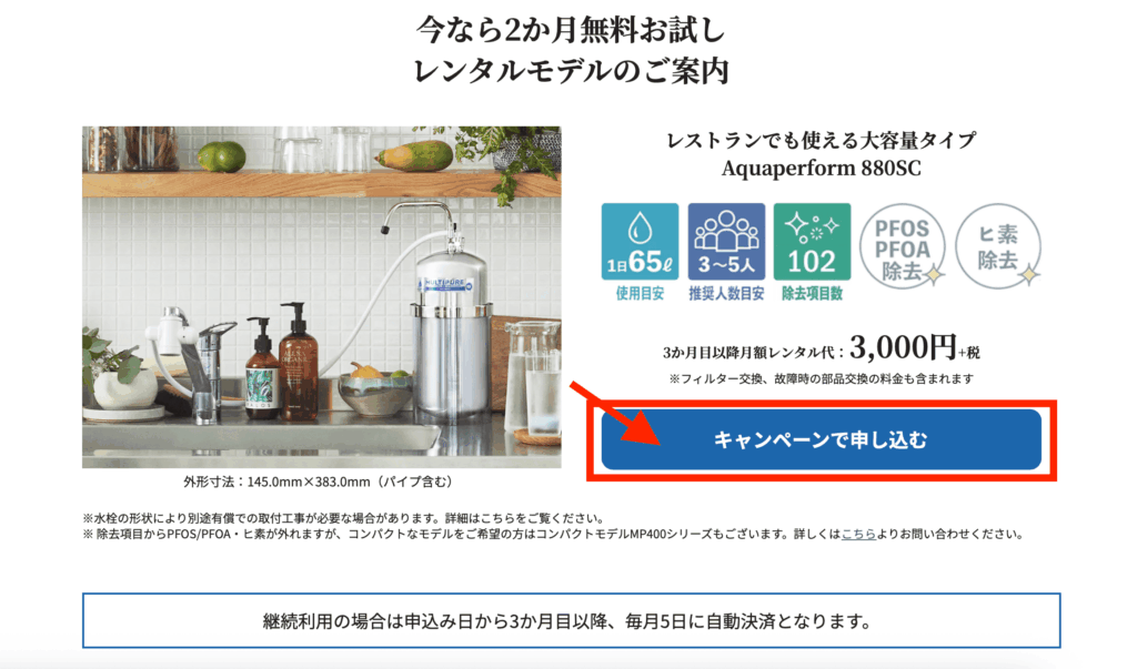 - 初期費用をかけずに高機能浄水器を使いたい