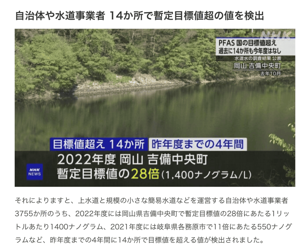 日本の水道水はPFAS濃度 過去4年間に14か所で目標値超えてる
