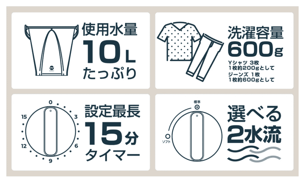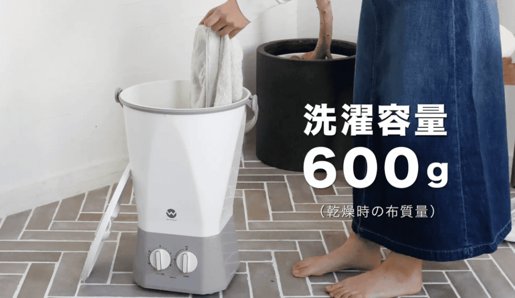 バケツ型の小型洗濯機で、容量は約600g。